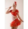 Tyto šaty jsou vyrobeny klasickým způsobem. Použitý materiál je velmi kvalitní pokovovaná plavkovina ve tveru tečky, někdy tečky s hologramem . Tímto klasickým způsobem vám můžeme do kostýmu zapracovat jakýkoli motiv, jakýkoli potisk, jakékoli zdobení kamínky.